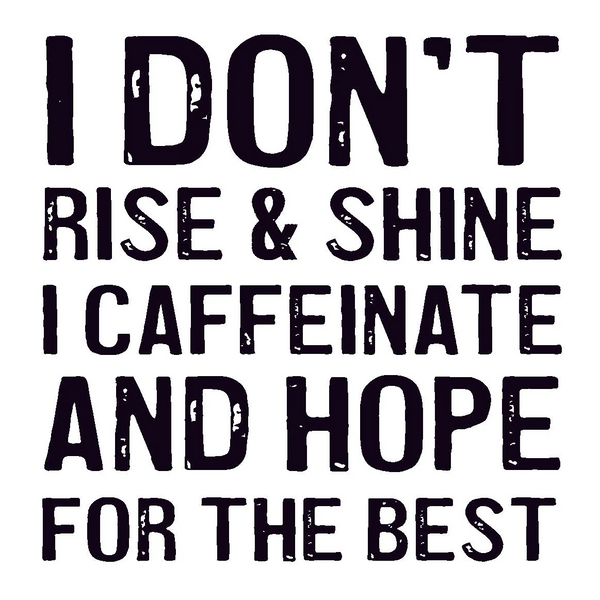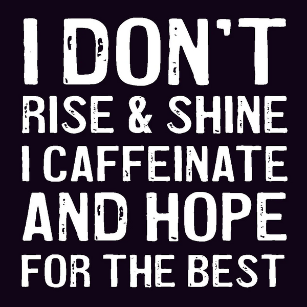 I don't rise and shine, I caffeinate and hope for the best.