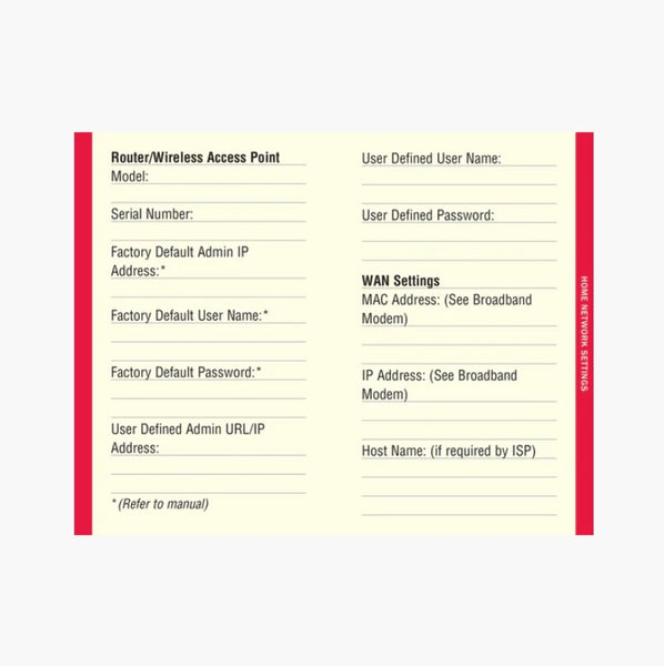 You can also make notes about home network configurations, software license numbers, etc., in pages in the back of the book.