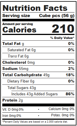 Sugar, Glucose Syrup, Water, Modified Corn Starch, Gelatin, Contains Less Than 2% of Citric Acid, Malic Acid, Sodium Malate, Natural Flavors, Starches (Potato, Wheat), Color (Carmines).